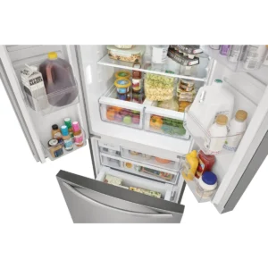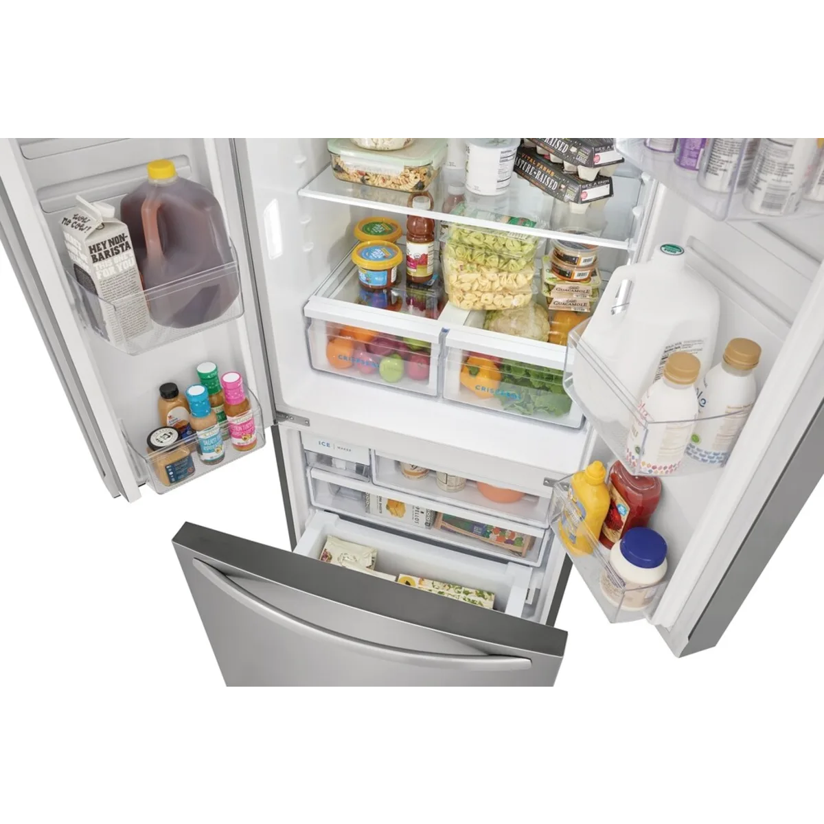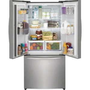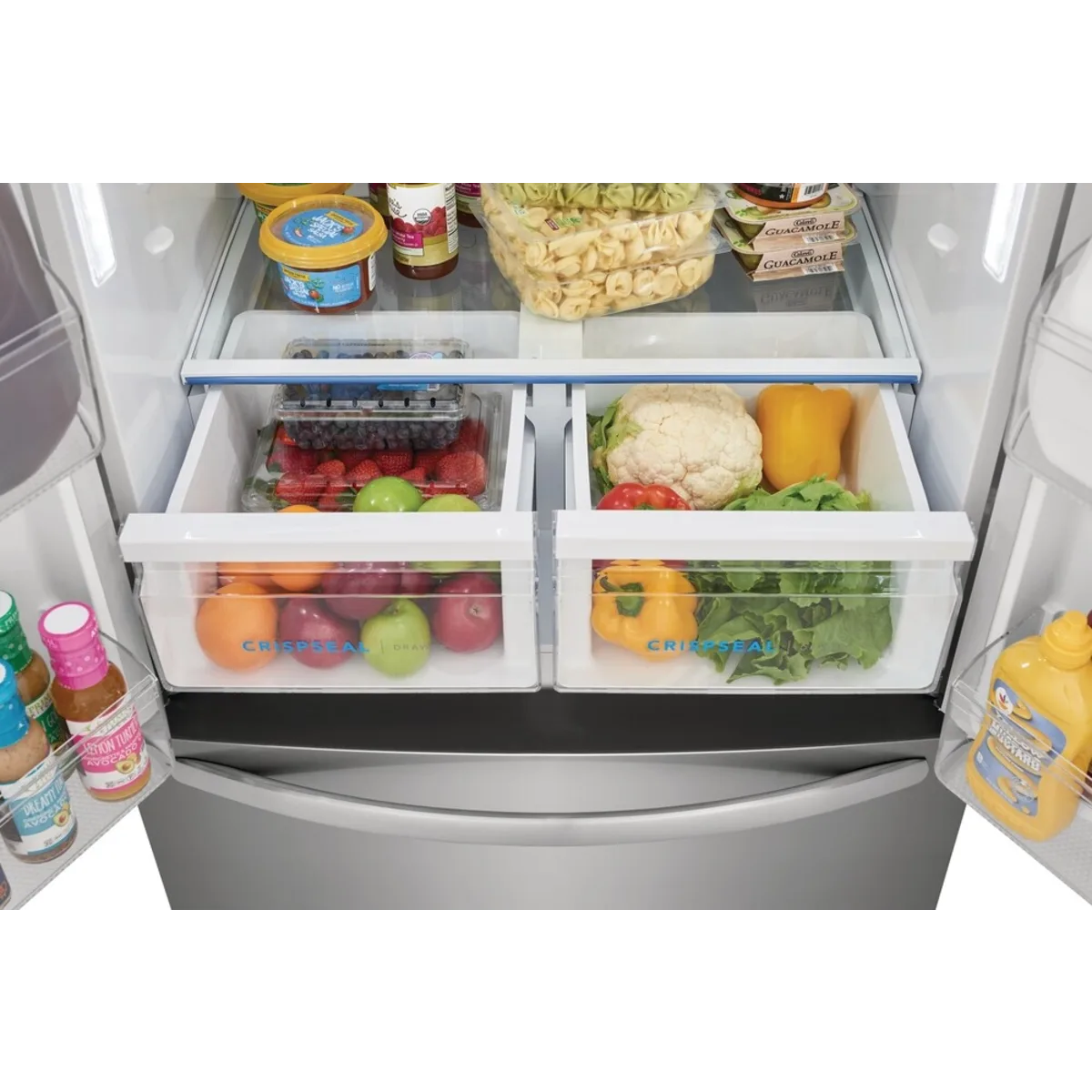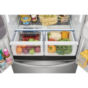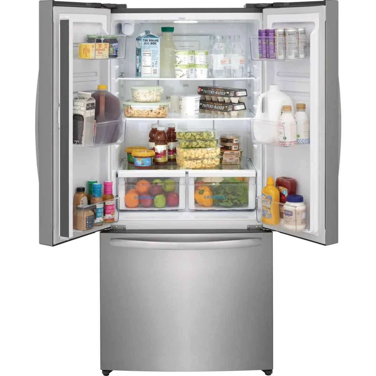 Keep food fresh with this Frigidaire 17.6 Cu. Ft. Counter-Depth French Door Refrigerator. With adjustable shelving, you can accommodate groceries of all shapes and sizes with ease. Additional features include 2-crisper, gallon door bins, 2-liter door bins, freezer drawer, door ajar alarm, and LED lighting. This refrigerator is also Energy Star Certified for efficient energy consumption.