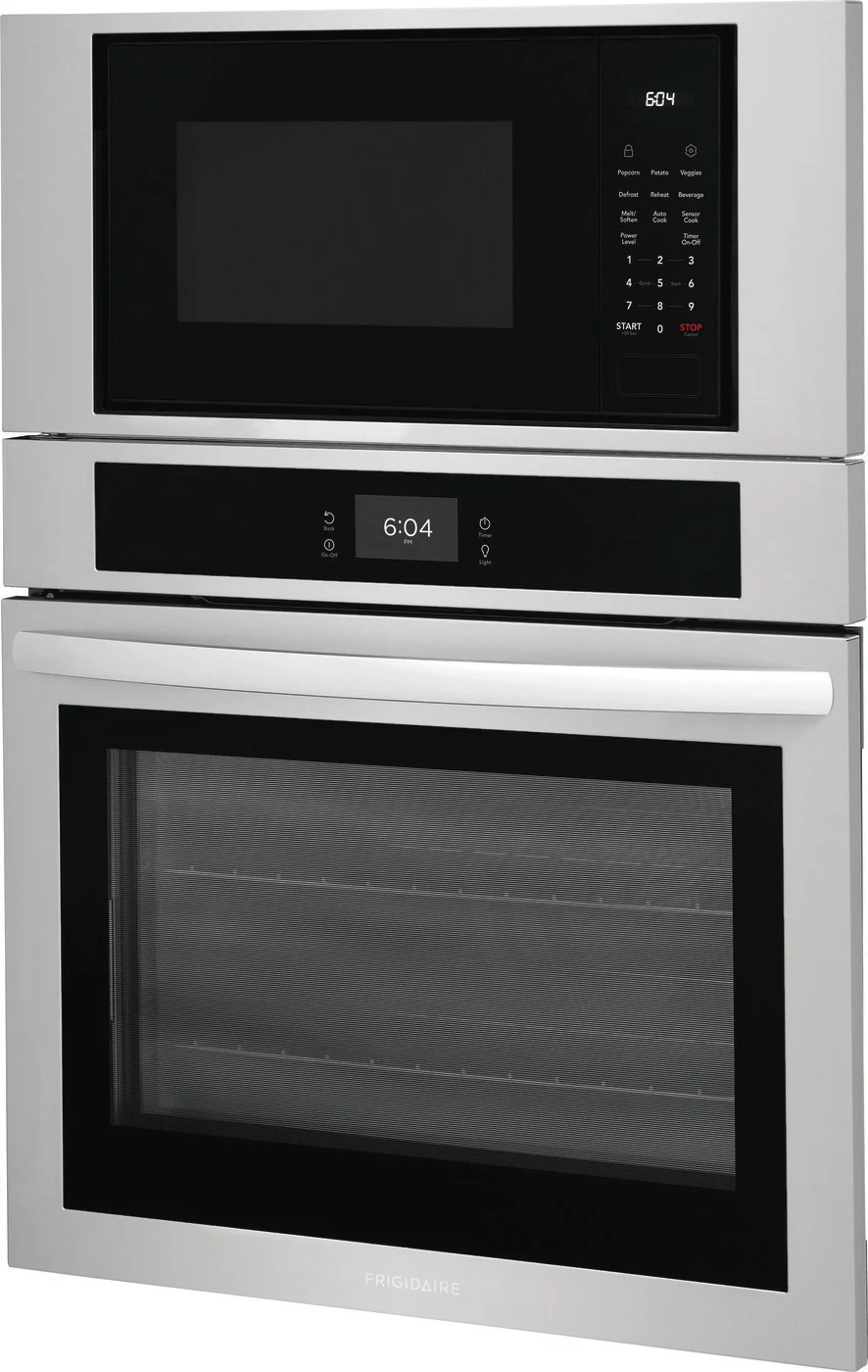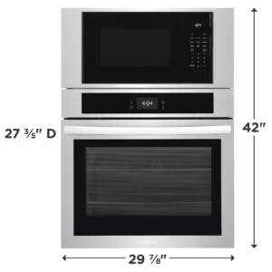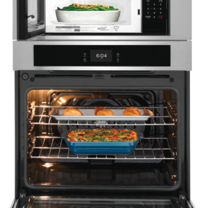 Get faster, more even multi-rack baking with the Frigidaire 30″ Electric Combination Wall Oven, featuring a powerful convection fan that evenly circulates hot air throughout the oven. Your oven cleans itself – so you don’t have to. Self-clean options are available in 2, 3, and 4-hour cycles. With additional features like a Premium Touch Screen Control Panel, Customizable Broil, and a Convenient Cook Time Setting, this Frigidaire combination wall oven will meet all your cooking needs and more.