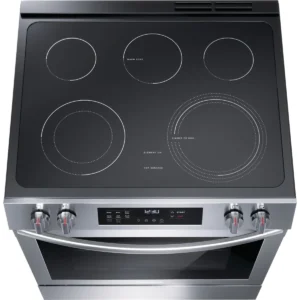 Get the look of a built-in range, without the remodel. This Front Control Range easily fits the space of your existing 30″ range. The Convection Bake delivers faster, more even baking results. Plus, the new Even Temp™ cooktop element reduces hot and cold spots in your pan, providing consistent results every time. Also features a convenient 3-hour self-clean cycle.