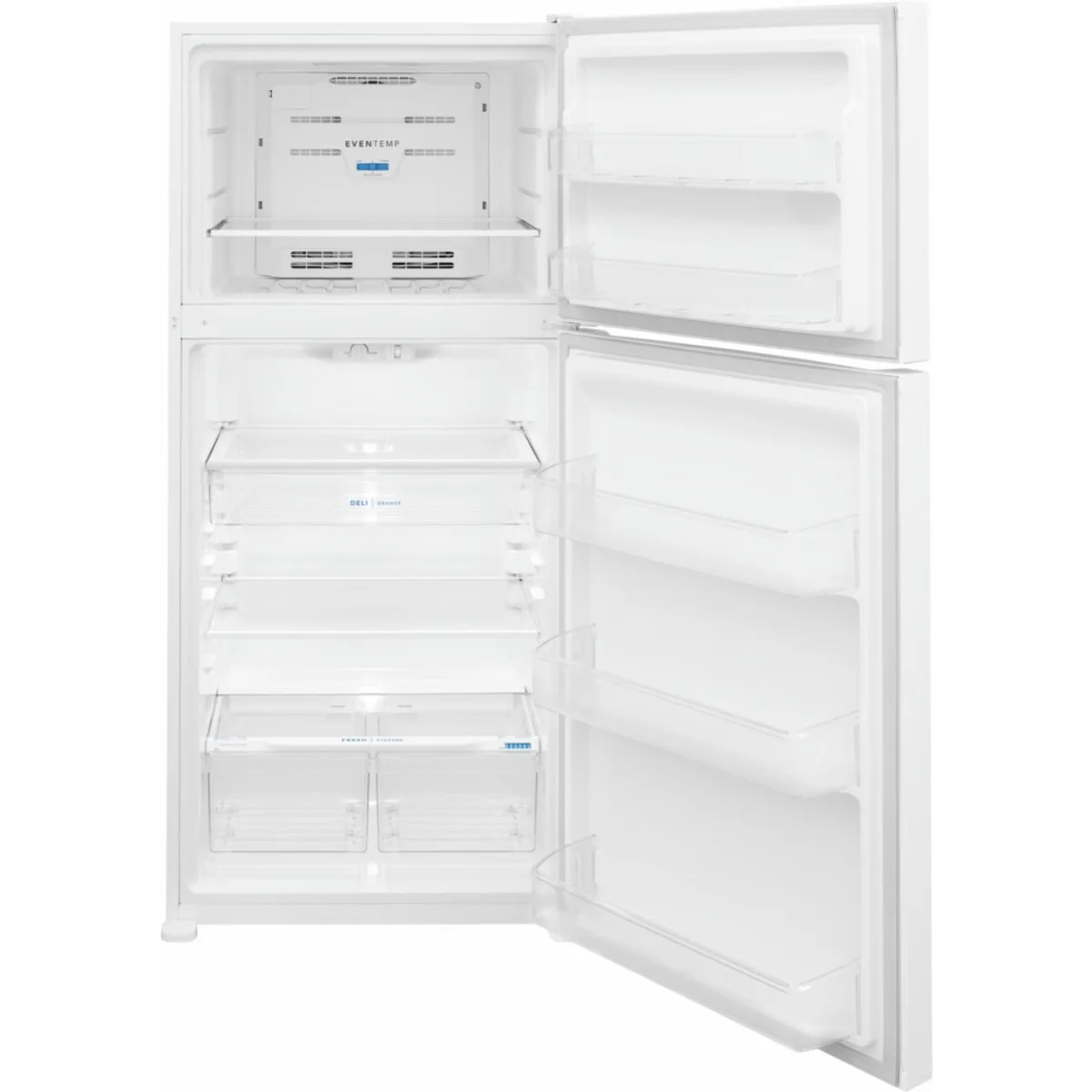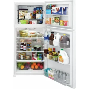Keep your food fresh and organized with this spacious 30-inch top freezer refrigerator from Frigidaire. This 20 cu. ft. refrigerator fits in the same-sized cutout as a traditional 18 cu. ft. model, but with more capacity. It offers flexible storage options including 2 adjustable glass shelves, humidity-controlled crisper drawers, and gallon door bins for larger containers. Enjoy consistent temperatures with the EvenTemp™ Cooling System, and rest easy knowing it’s Garage Ready, built to perform in a wide range of environments. This unit is also ice maker ready, ADA compliant, and ENERGY STAR® certified for energy-efficient operation.